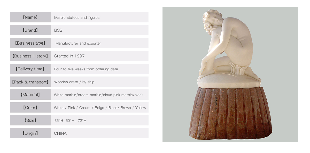 Character : Natural marble / solid and hard / polished / white and brown.This beautiful girl statue is hand-carved by our sculptor in strong white marble.