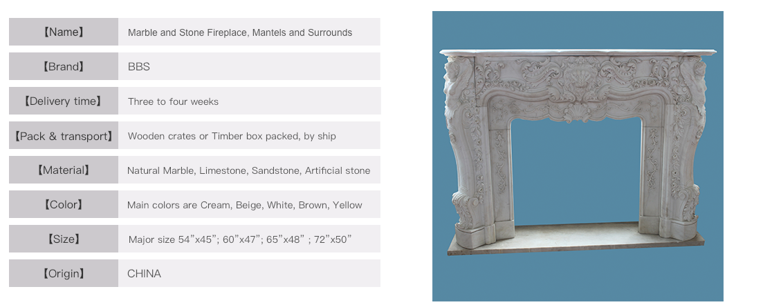 2, for French style and US style stone fireplace surrounds, outside normally use 2-4cm thick wooden crates, inside usually use bubble plastics to wrap stone parts and fill up the spaces with cotton balls.