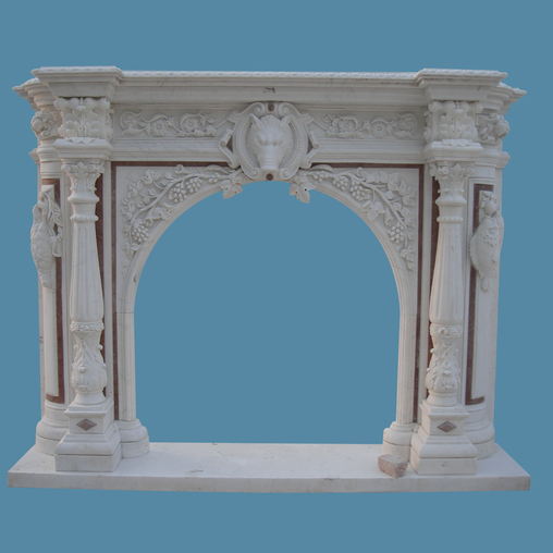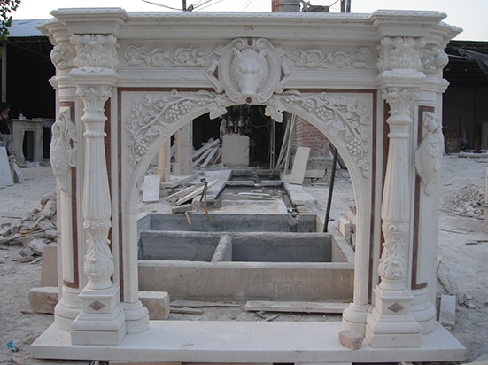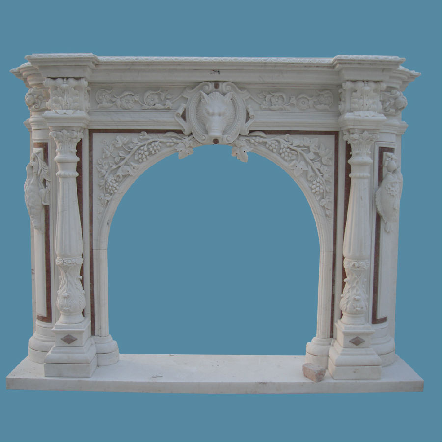 The carved pillars ,mantel top, face panel with grapes, flowers and animal head around the whole mantel, it definitely shows an upgrade art piece to enhance the beauty of your house.