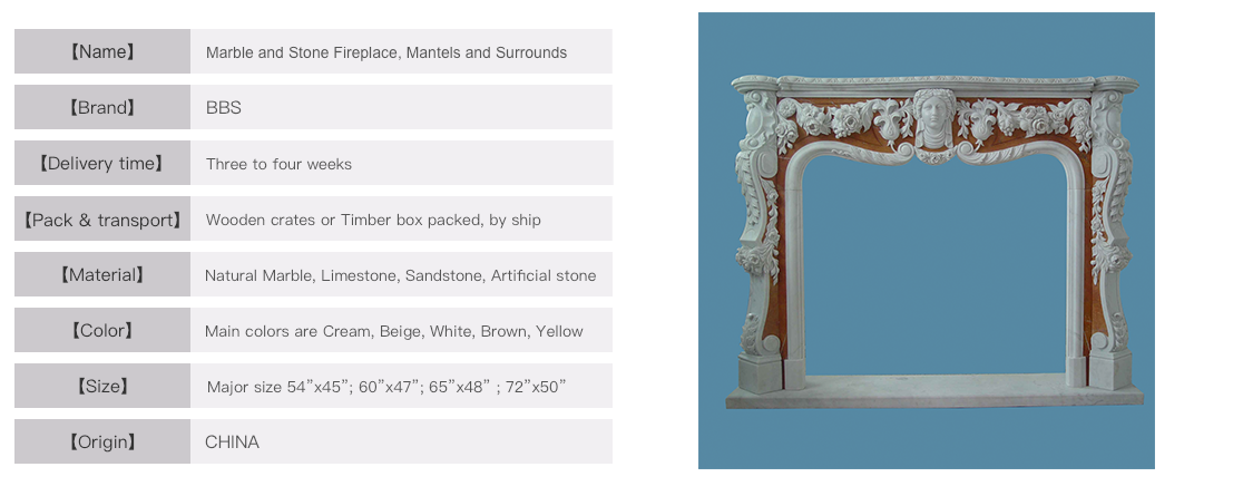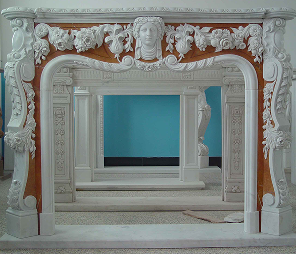 This beautiful fireplace mantel is finely carved in a two types of marble by our craftsman.