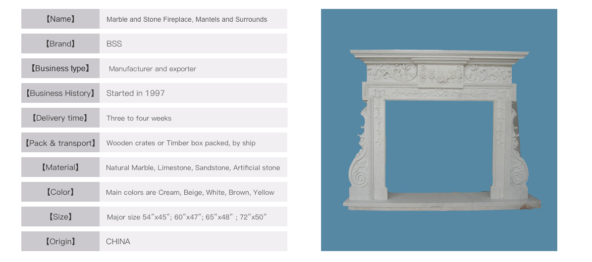This elegant fireplace mantel is finely madein a very popular white marble by our craftsman.