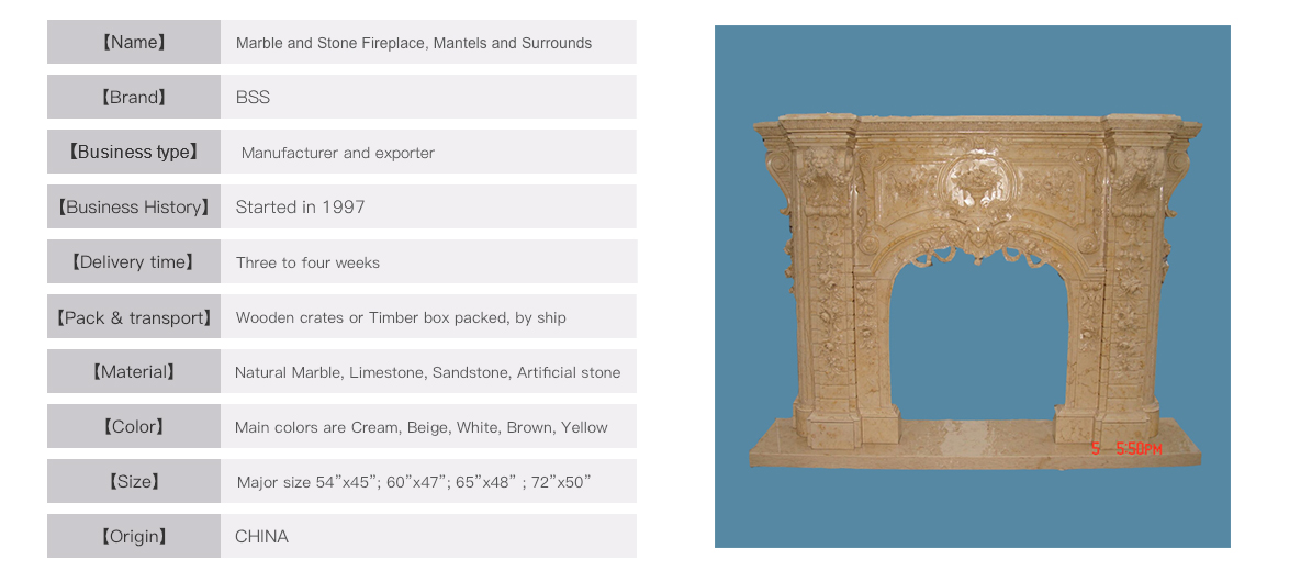 White marble Cream marble Yellow marble Black marble Travertine sandstoneHearth