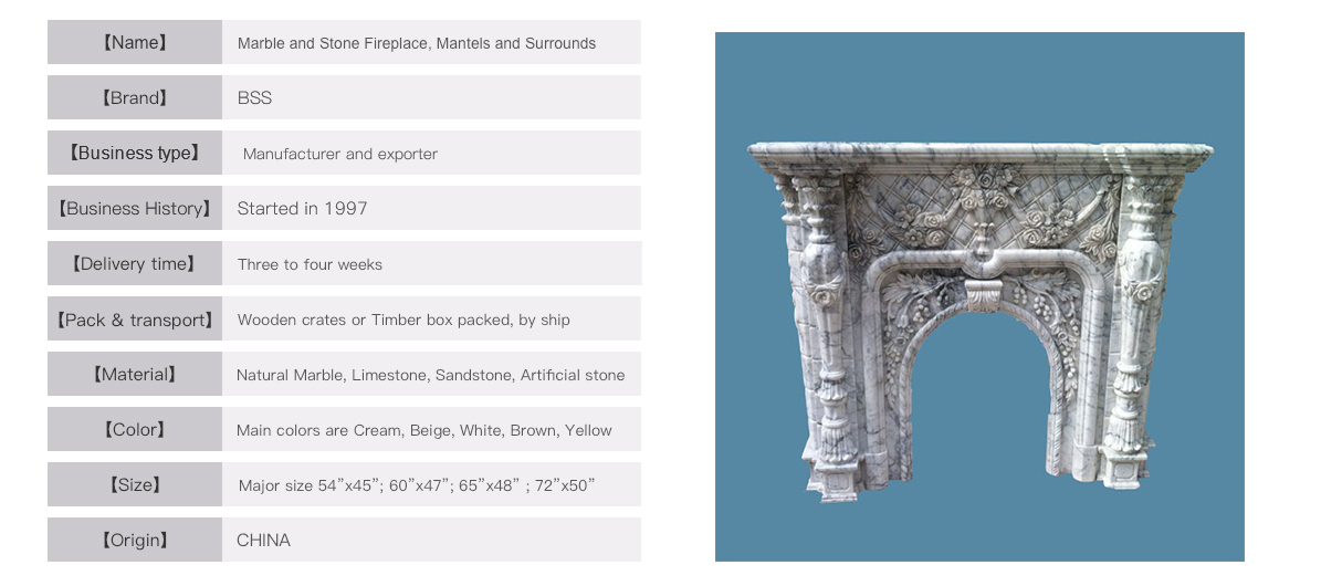 White marble Cream marble Yellow marble Black marble Travertine sandstoneHearth