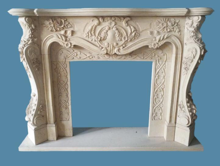 A very excellent mantel design is fully hand-carved by our master craftsman in beige limestone.