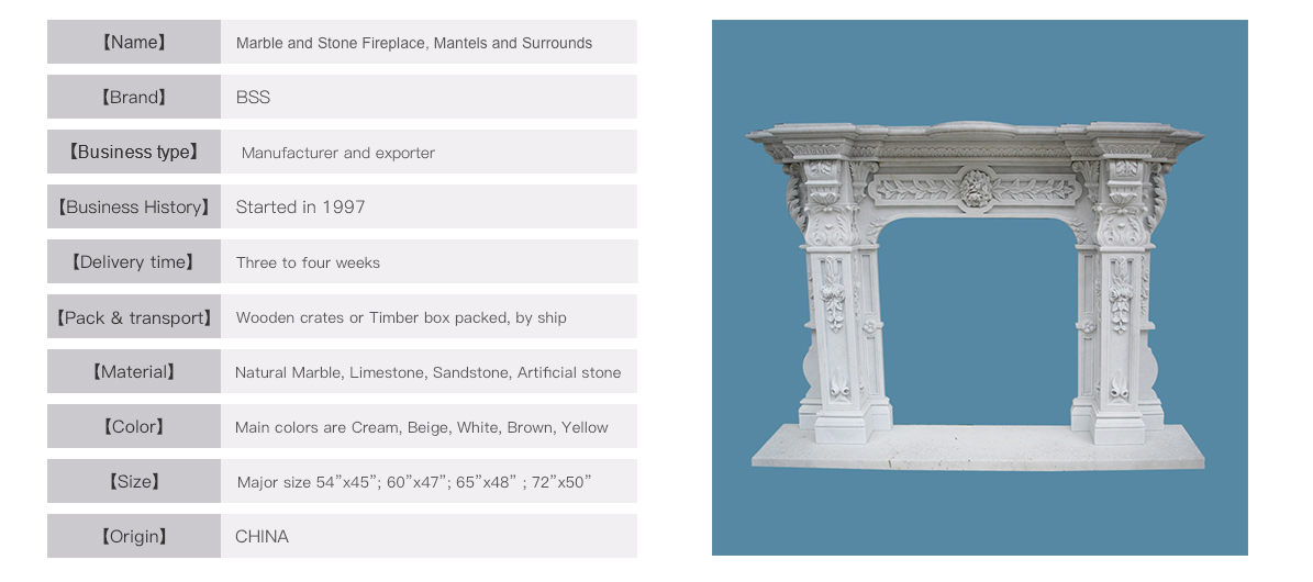 2, for French style and US style stone fireplace surrounds, outside normally use 2-4cm thick wooden crates, inside usually use bubble plastics to wrap stone parts and fill up the spaces with cotton balls.