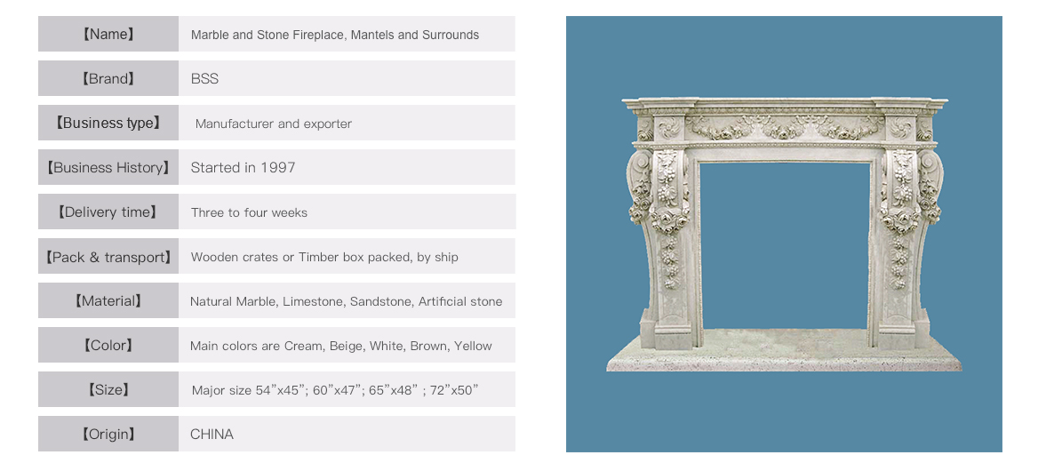 2, for French style and US style stone fireplace surrounds, outside normally use 2-4cm thick wooden crates, inside usually use bubble plastics to wrap stone parts and fill up the spaces with cotton balls.