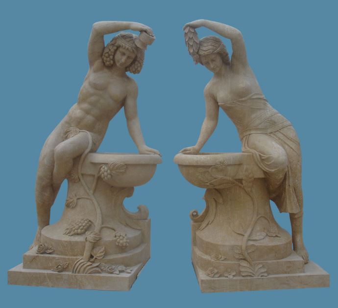 This set of figure sculpture contains a man and women , finely made in brown marble.