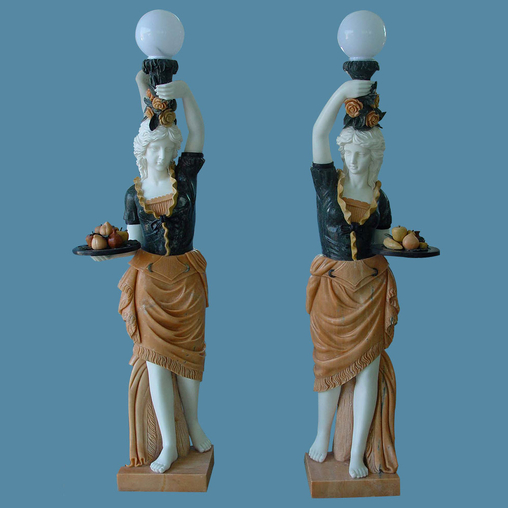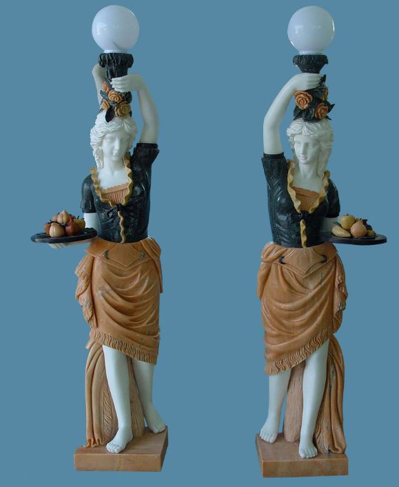 These two ladies figure holding lights are fully hand carved in a few types of marble.