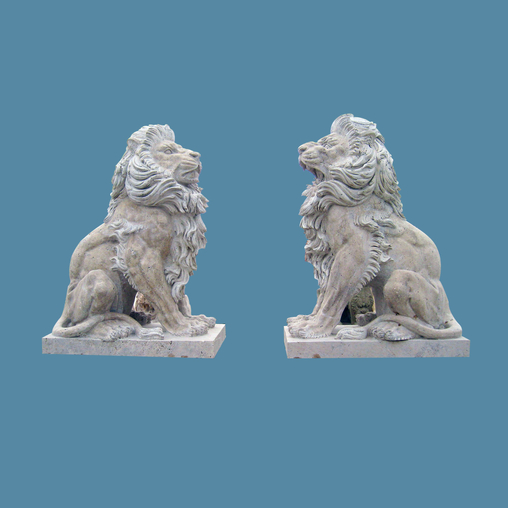 This pair of strong lion statue in one solid piece of travertine and with separate pedestal.It looks like antique finish to show a long period of stone sculptures.It definitely enhance the beauty of your estate with long impression.Single piece or pairs can be ordered as you want. Delivery time is 4 weeks to ship from China.
