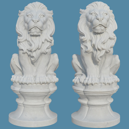 Character : Natural marble/ solid with veins / honed finish / white color.Such an elegant marble lion with shaped pedestal, use one piece solid/strong and high grade white marble. Everything is hand-carved art work by our master craftman. Size can be made larger at your needs. Delivery time is 4 weeks to ship from China.