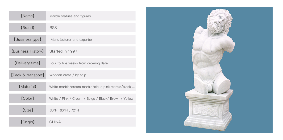 This famous bust in the world, Laocoon statue is made in a good white andhard marble. It is all hand-carved workby our master craftman who has 25 years carving experience.