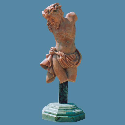 A truely amazing figure statue with hisbroken arms, carved from a rosetta red marble.