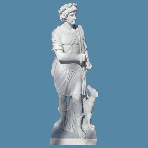 This beautiful hunter statue with hisdog is finely carved in a white and hard marble.