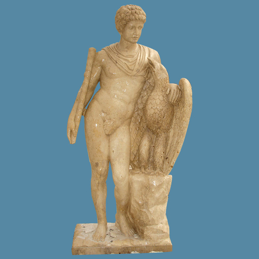 This brilliant stone figure, finely carved from a light color travertineto feature