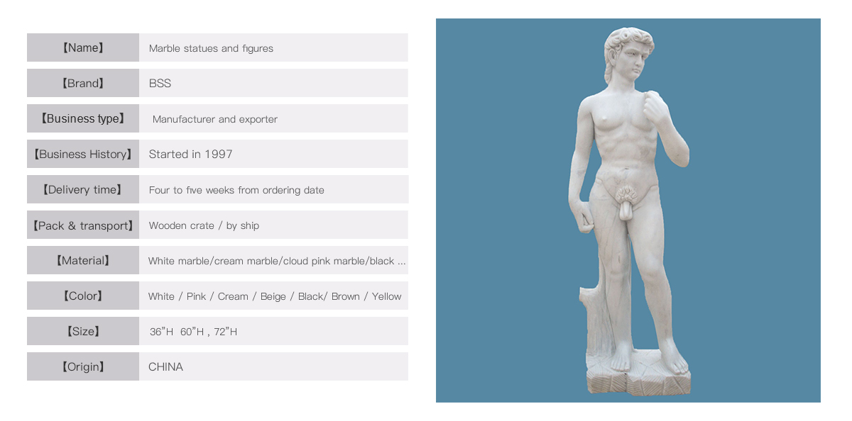 The hair, face, muscle and all featuresexpress a high quality marble artistic décor.