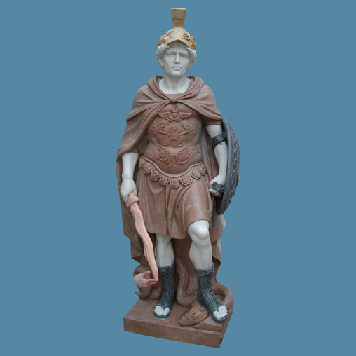 This beautiful Roman warrior statue ishand-caved in a few beautiful natural marble.