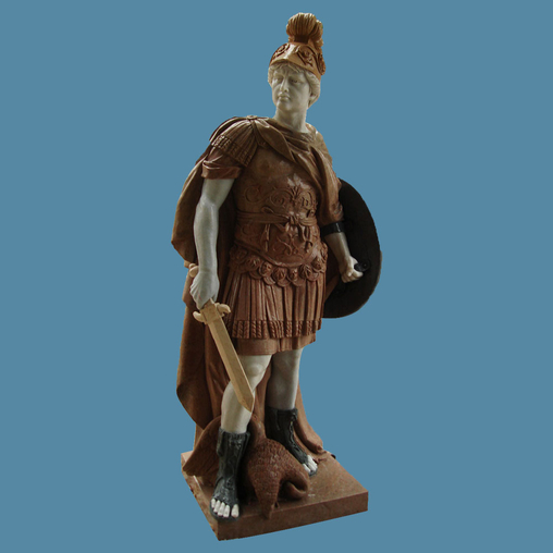 This beautiful Roman warrior statue ishand-caved in a few beautiful natural marble.
