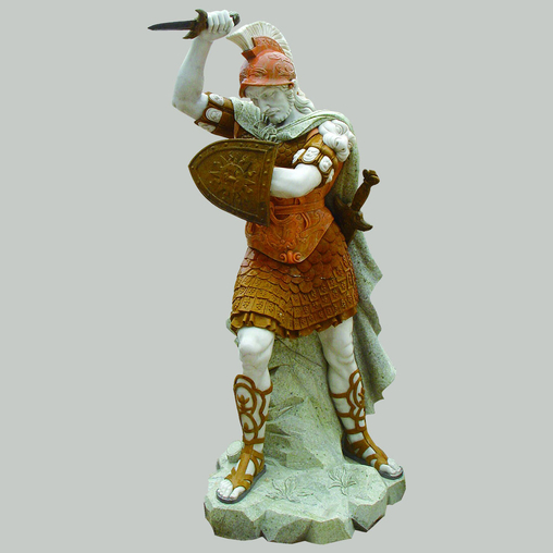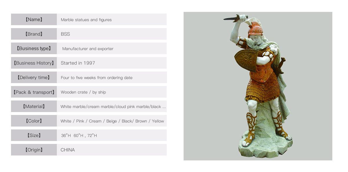 This beautiful Roman warrior statue ishand-caved in a few beautiful natural marble.