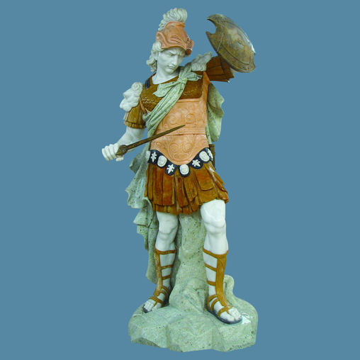 This elegent warrior statue with swordand shield is finely carved in a few types of natural marble.