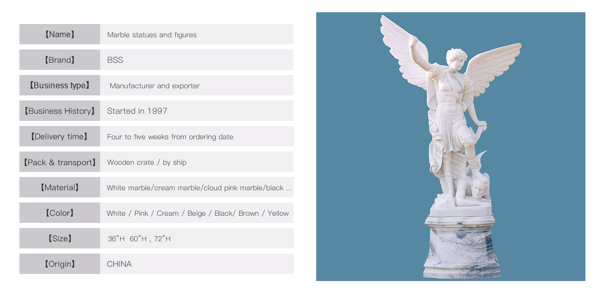 This is also one of famous Greek fairytails, a warrior statue with wings andhold a sword to kill the monster. Thisgrand marble figure is hand-carved to suit on a solid pedetal to enhance themightiness and the beauty of the warrior statue.