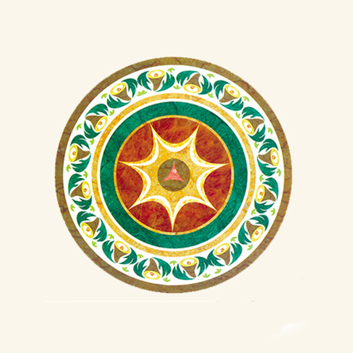 Stone medallion cut by water jet from natural colorful stone, fit together and mounted on mesh or tiles by experienced worker, can be various colors, patterns and sizes, suitable for indoor and outdoor space.