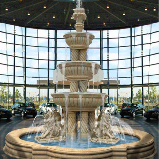 The carved lions, columns and water bowls are full of this amazing fountain. Dimensions can material can be custom made.