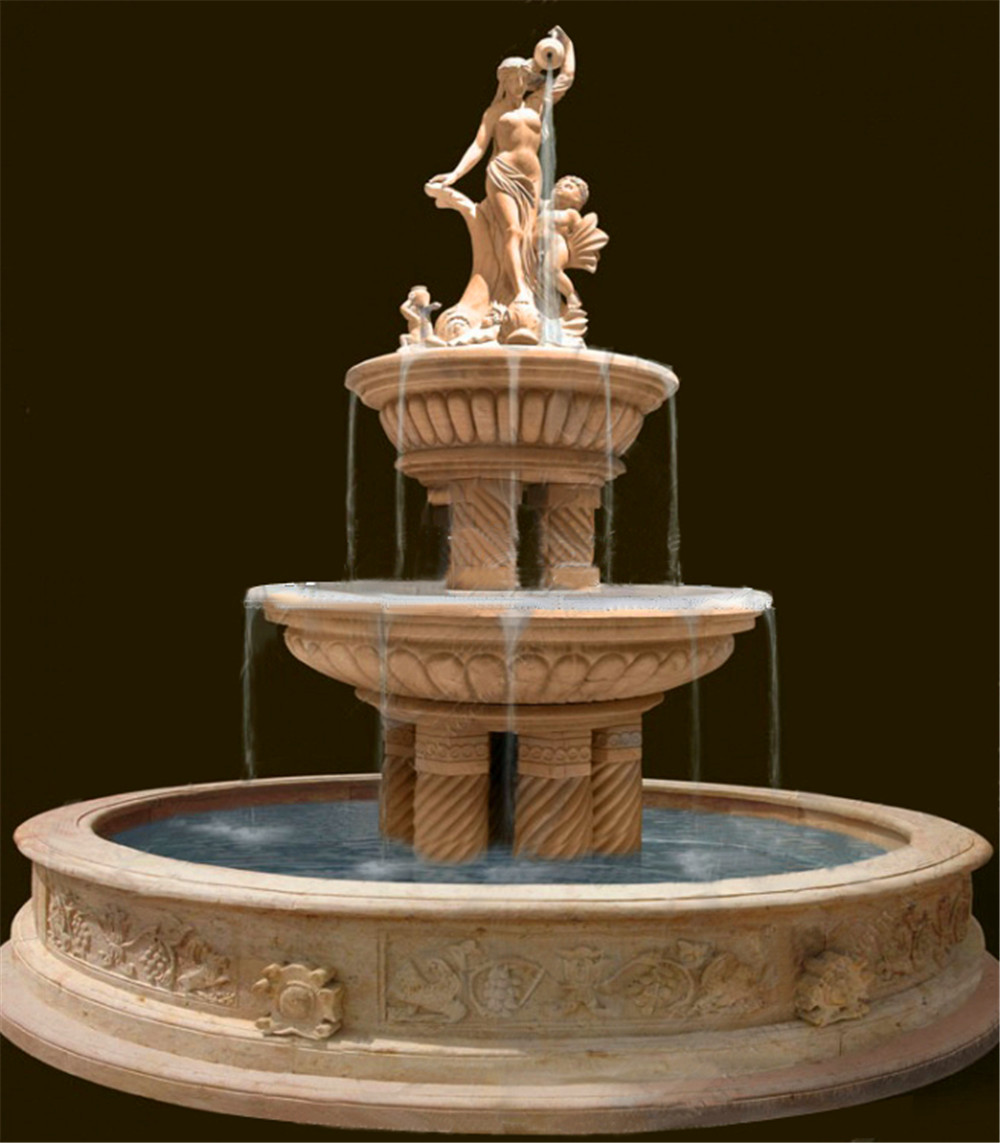 Character:Natural stone/solid and hard/polished/cream color. It is a very elegant water fountain from natural travertine with unfilled holes. The nicely carved horses head, leaves all details around this fountain to create an amazing sculpture work to enhance the beauty of your estate. Many fountains are in stock for immediate delivery to any sea port or to your home address. Send us a message to get more information about it.