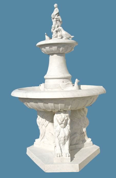 Character:Natural stone/solid and hard/polished/cream color .It is really amazing water fountain from a very good white marble. The nicely carved lions , birds and baby statues all around this fountain to create a master sculpture work to enhance the beauty of your estate. Many fountains are in stock for immediate delivery to any sea port or to your home address. Send us a message to get more information about it.