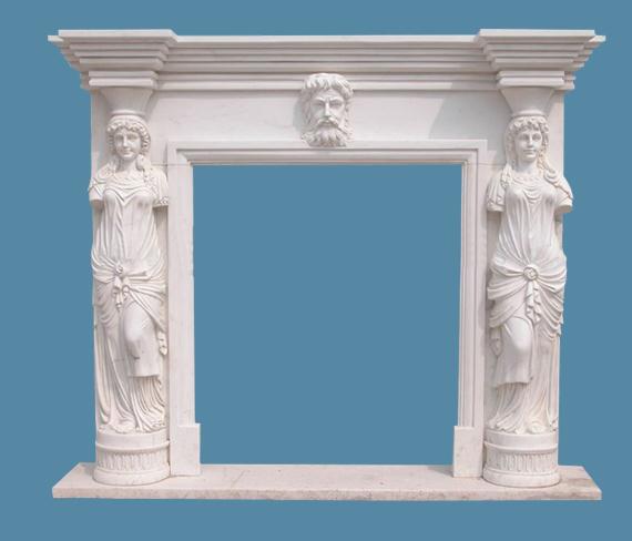The hand-carved two lady figures,, man face all around the mantel to show an upgrade piece.