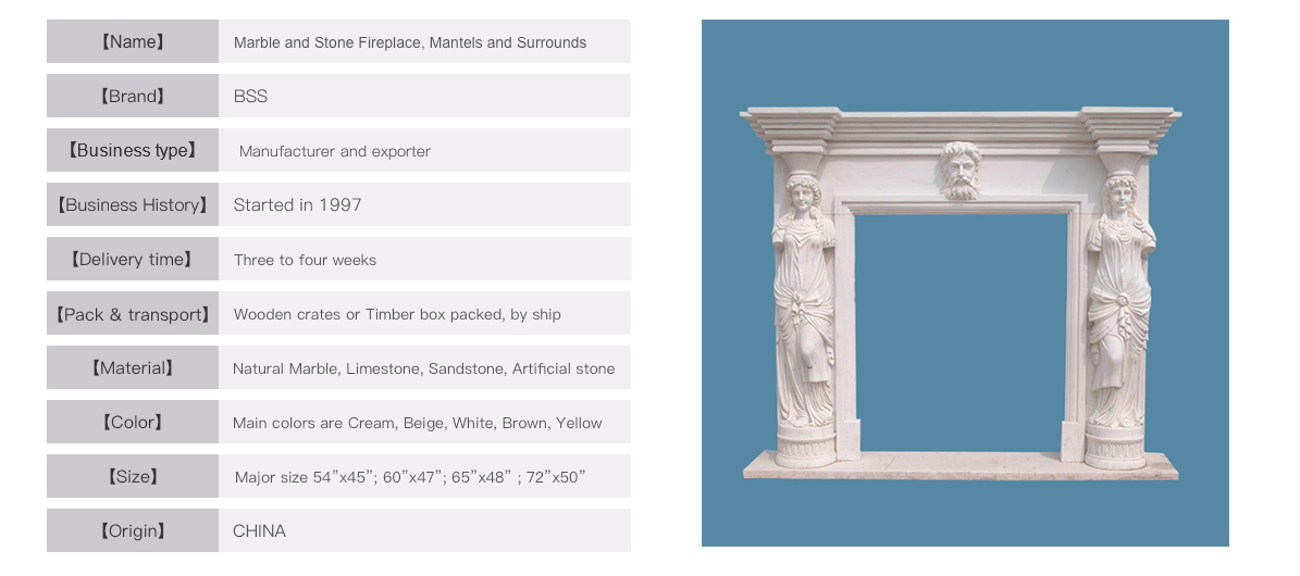 2, for French style and US style stone fireplace surrounds, outside normally use 2-4cm thick wooden crates, inside usually use bubble plastics to wrap stone parts and fill up the spaces with cotton balls.