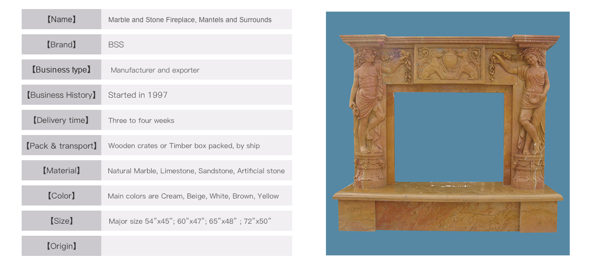 2, for French style and US style stone fireplace surrounds, outside normally use 2-4cm thick wooden crates, inside usually use bubble plastics to wrap stone parts and fill up the spaces with cotton balls.