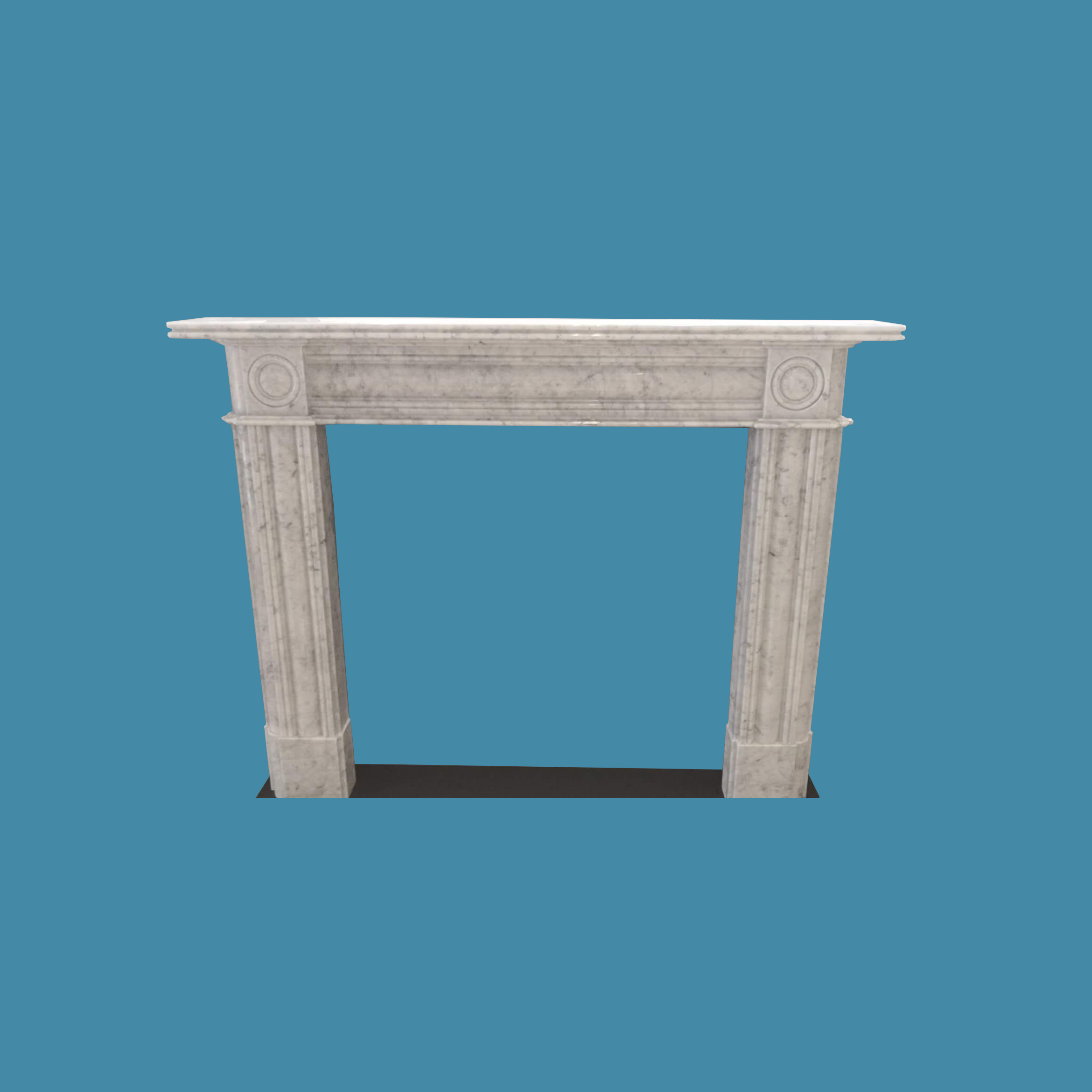 This similarfireplace mantel as “Averso” design but add a front panel in white limestone ormarble. The finely made mantel shelf andtwo legs to represent this beautiful model.