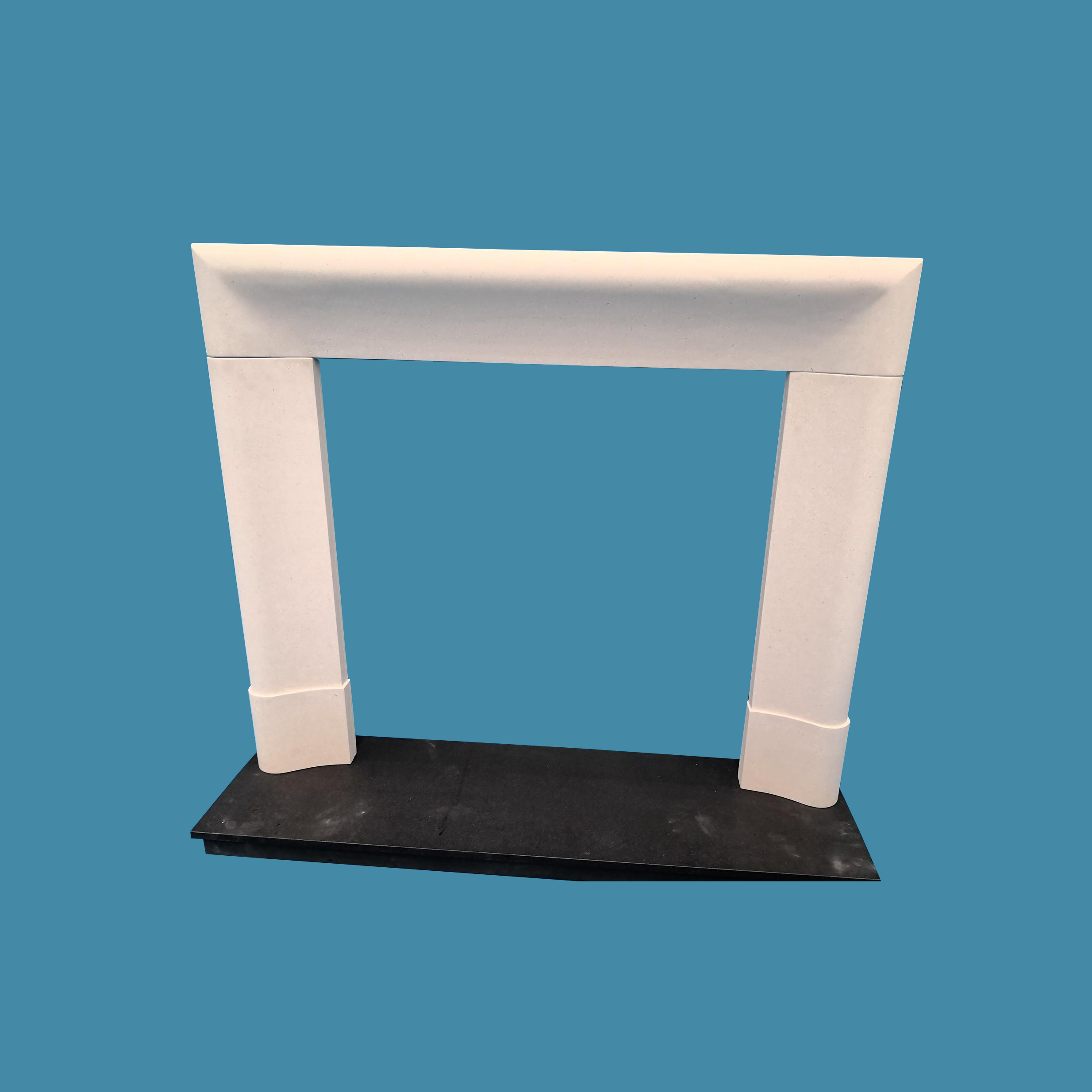 This is a verypopular fireplace mantel design made in white limestone or micro white for UKmarket. We regularly supply minimum 12containers limestone fireplace per month. Lead time is two to three weeks toship. Black granite sets can be supplied in same container with fireplace.