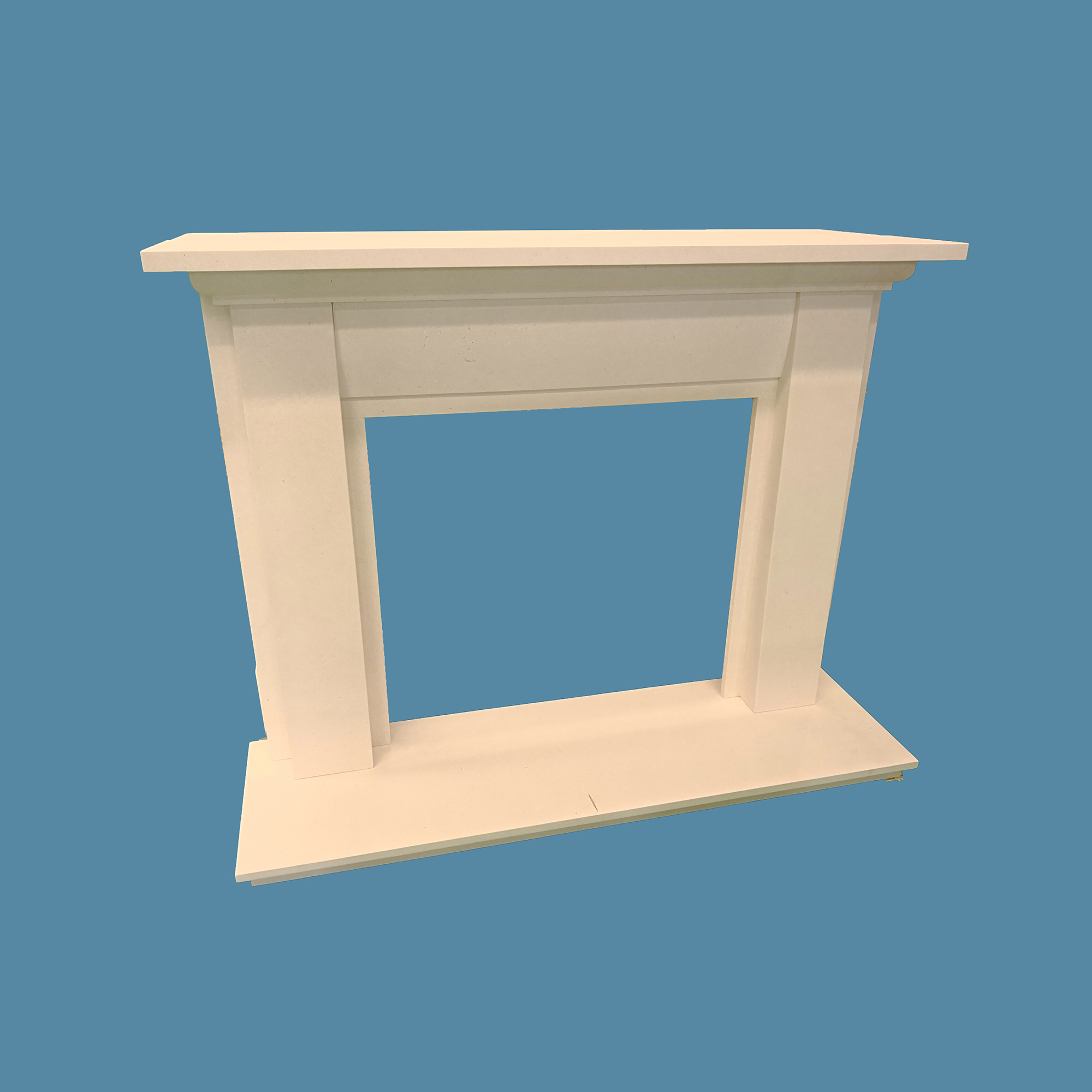 This is a verypopular mantel design made in white limestone for UK market. Material can bechanged in micro or natural marble too. It is normally suited with granite hearth and back panel or cast iron.