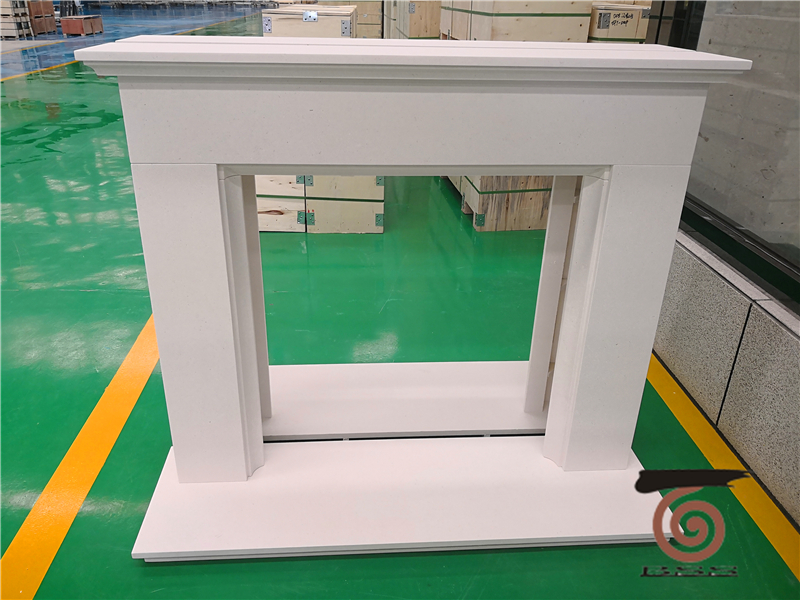 This is a verypopular fireplace mantel design made in white limestone or micro white for UKmarket. We regularly supply minimum 12containers limestone fireplace per month. Lead time is two to three weeks toship. Black granite sets can be supplied in same container with fireplace.