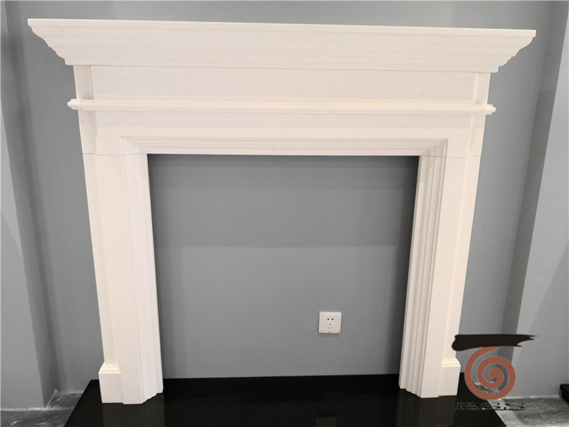 The “Teramo” fireplace mantel is nicely made inwhite limestone blocks for UK market. Material can be changed in micro ornatural marble too. It is normallysuited with granite hearth and back panel or cast iron.