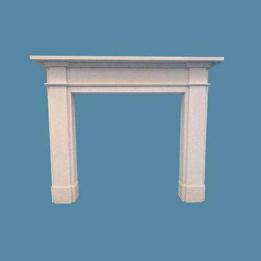 This “Devonshire”mantel surround in White limestone is sold well in UK market. Material can bechanged in micro or natural marble too. It is normally suited with granite hearth and back panel or cast iron.