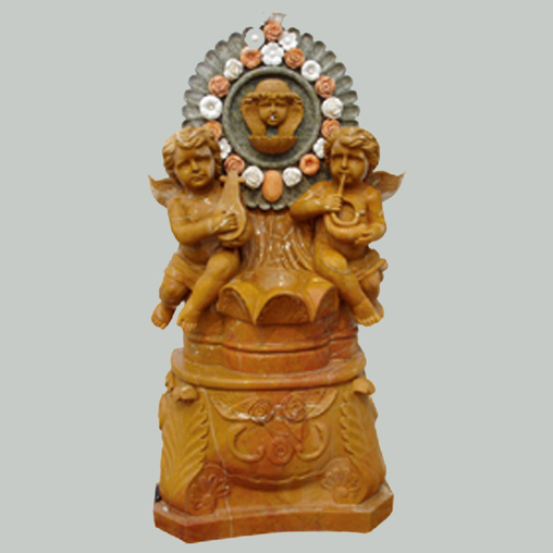 The two lovely cherubs wall fountain is madein our local yellow marble, a few mixedmarble colors in the top floral circle. The beautiful pedestal is a separate piece with acanthus leaves. Allcarved details are artistic work to creat this master piece, it leave lastingimpression in your luxury estate. Contact us to get more inforamtion at yourneeds.